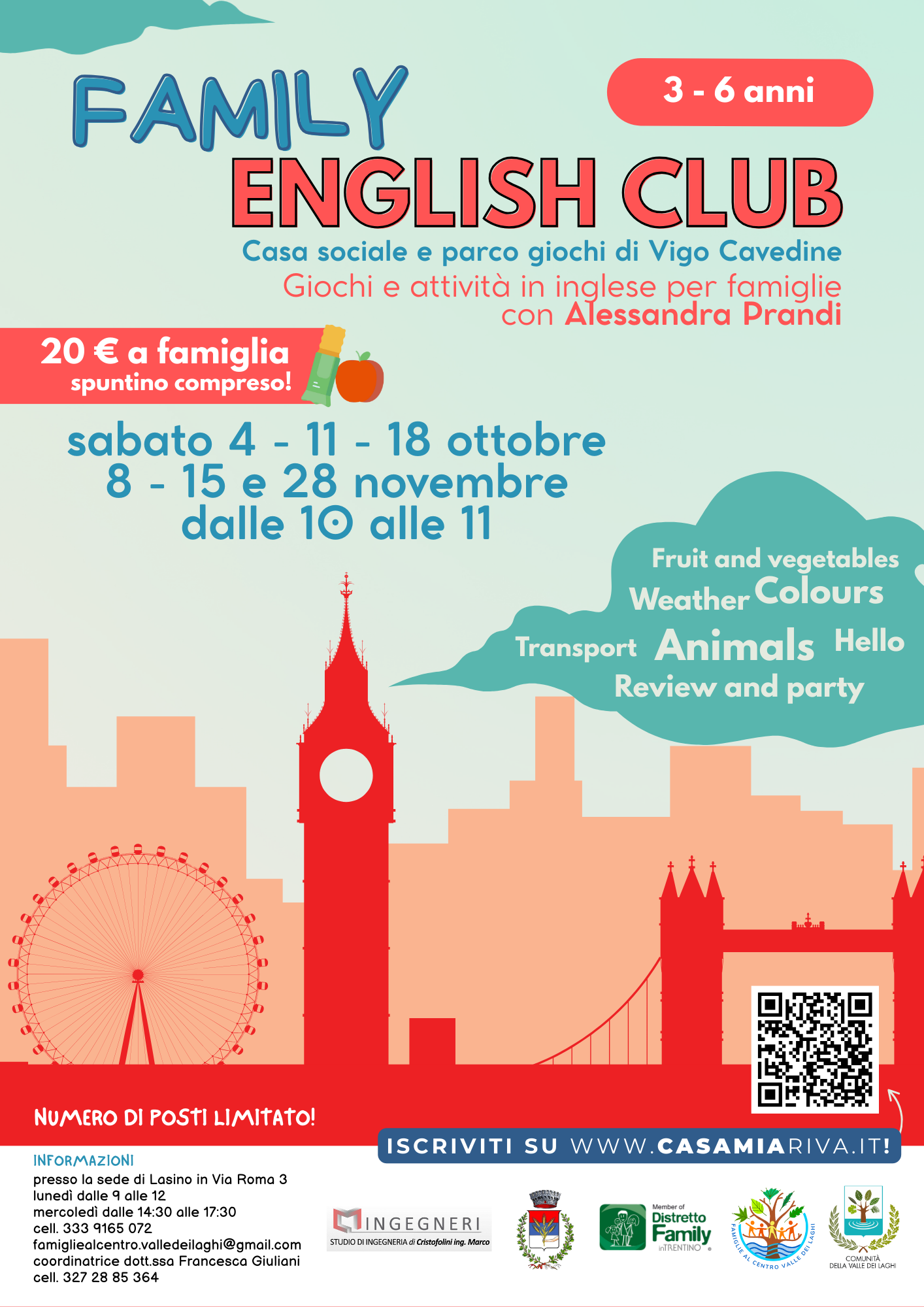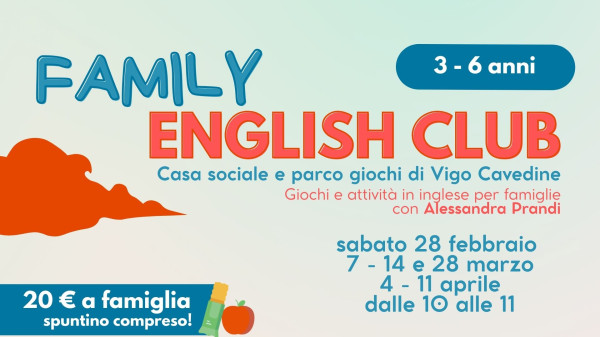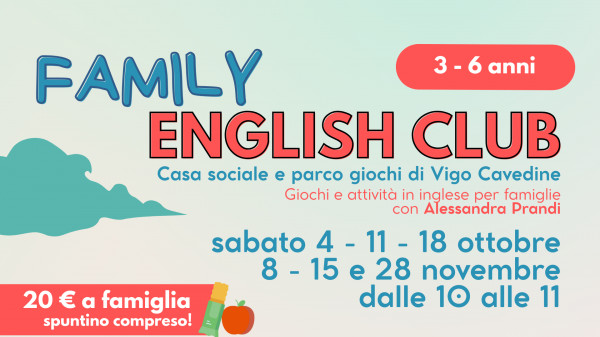 Un percorso, con l'esperta Alessandra Prandi, pensato per i bambini dai 3 ai 6 anni accompagnati da un adulto, dove l’apprendimento della lingua inglese avviene in modo naturale e divertente, attraverso il gioco, la musica, il movimento e le attività creative.