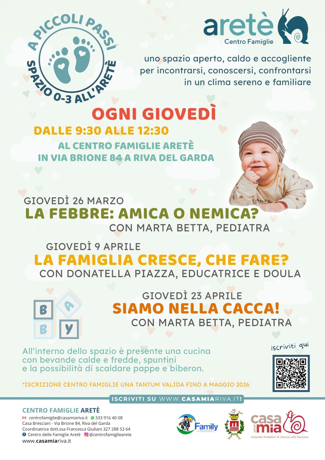 “A piccoli passi” è un luogo di incontro protetto e gratuito dedicato a neogenitori, nonni, nonne, o figure adulte che si occupano di neonati. Uno spazio aperto, caldo e accogliente dove è possibile incontrarsi, conoscersi, ricevere supporto e informazioni sul momento che si sta vivendo.