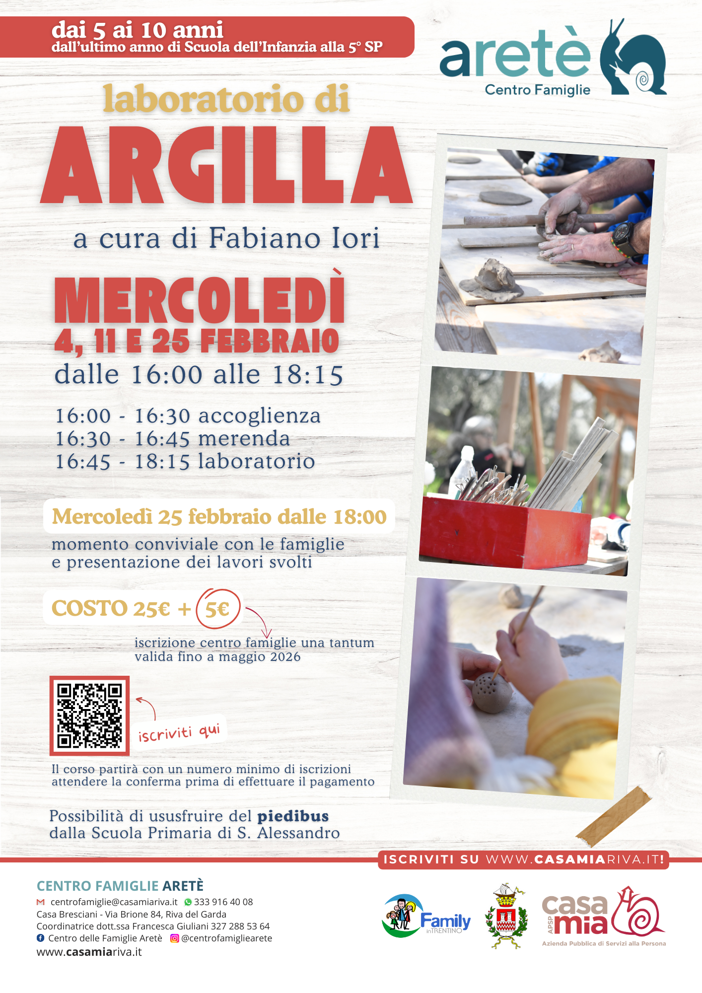 Dall’ultimo anno di Scuola dell’Infanzia 1° alla 5° SP (5-10 anni) - Costo 25 € + 5 € iscrizione al Centro Famiglie Aretè.